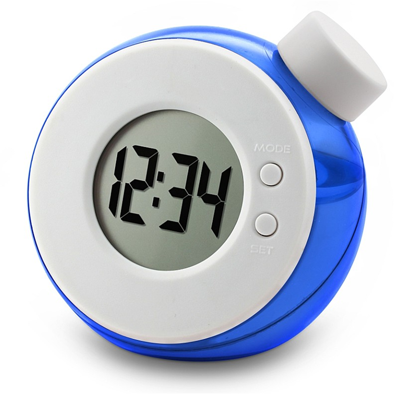This clock coming with mini round bottle shape, works without battery, it is starting to work when you filled water.