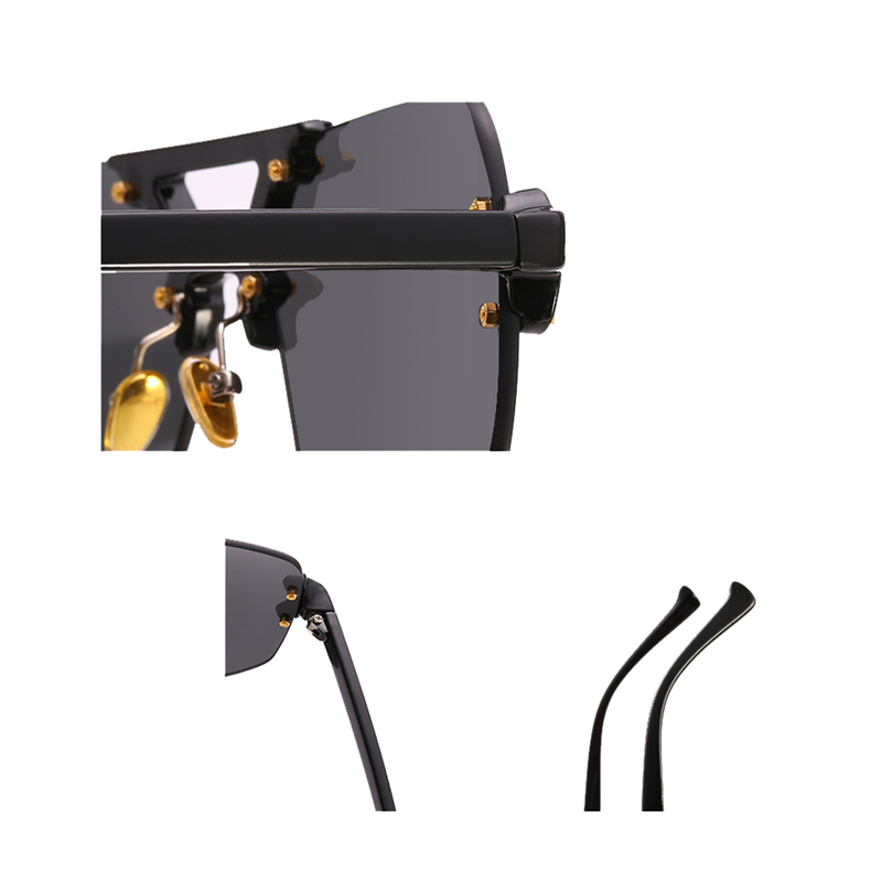 It is made of alloy and pc material, the lenses are gradient color. This rimless style makes you more attractive and eye-catching in outdoor activities enthusiasts or in the party. Logo can be printed on the leg.