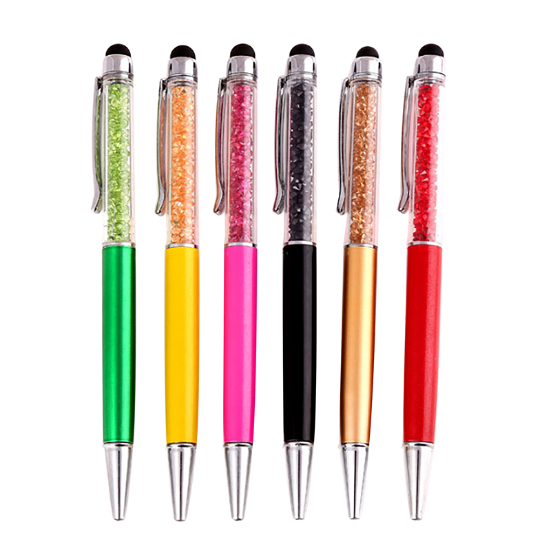This twist ballpoint pen is made of aluminum with various colors. It is about 5.6'' in length. Logo is available according to your artwork. The shining crystal and bright gloss of metal makes it so beautiful that suitable for each girl and lady.
