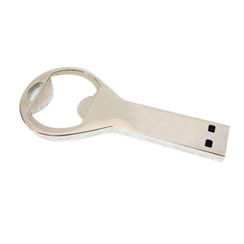 This 2GB USB bottle opener is made of metal. Various capacity are available. Company logo and name can be imprinted.