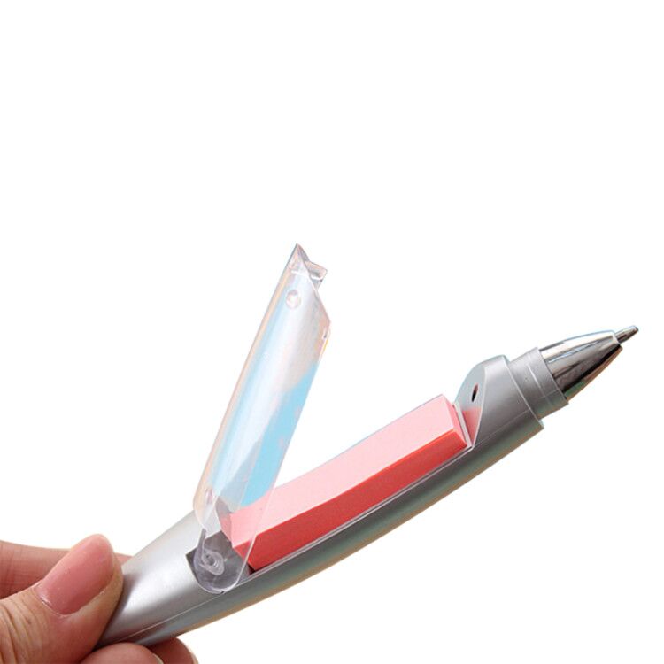 This LED ballpoint pen is made of plastic, which has sticky notes and led light. It is not only a pen, but also a small flashlight.