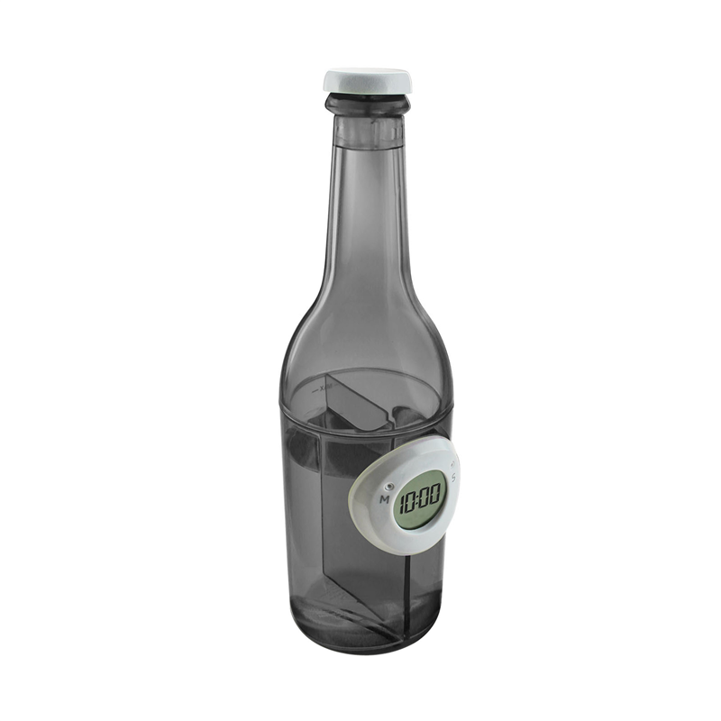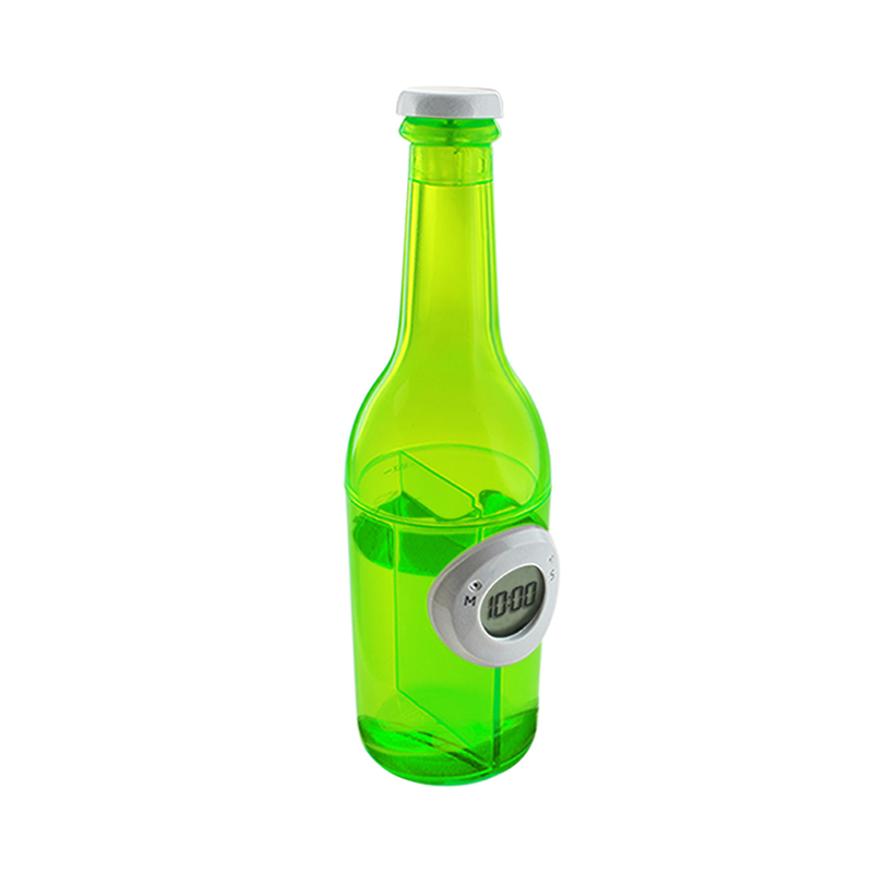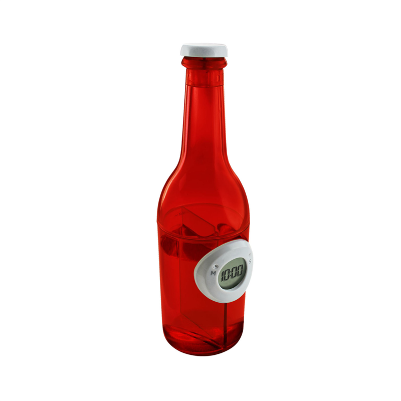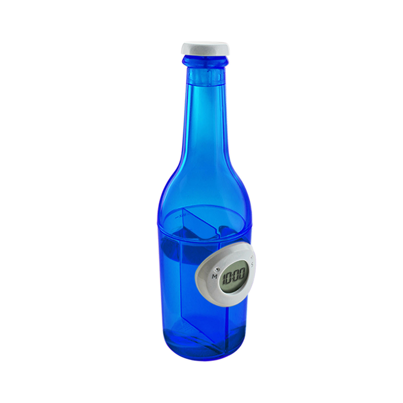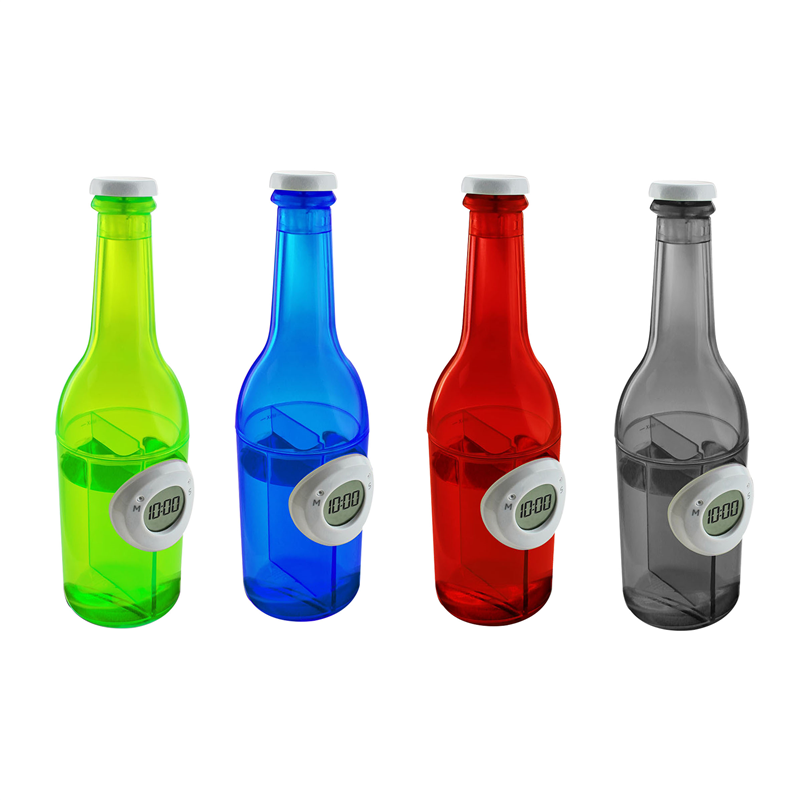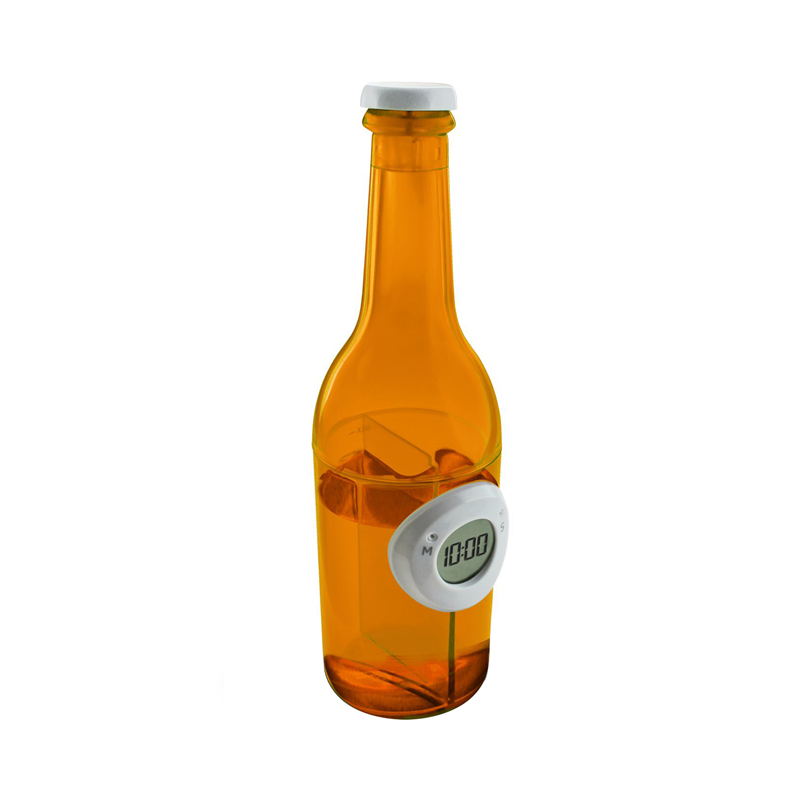 This clock is made of ABS, coming with beer bottle shape, it's worked without battery, it is starting to work when you filled water