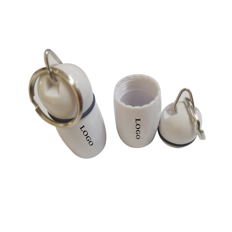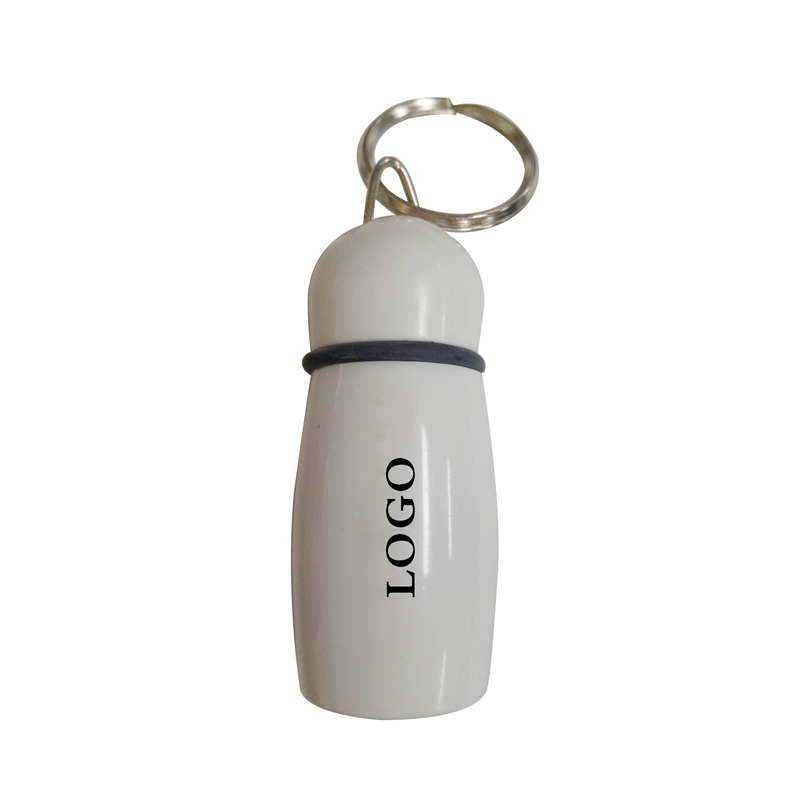 It is made of ABS material, it is not only a key chain, also can use for pills storage. Logo can be imprinted on it.