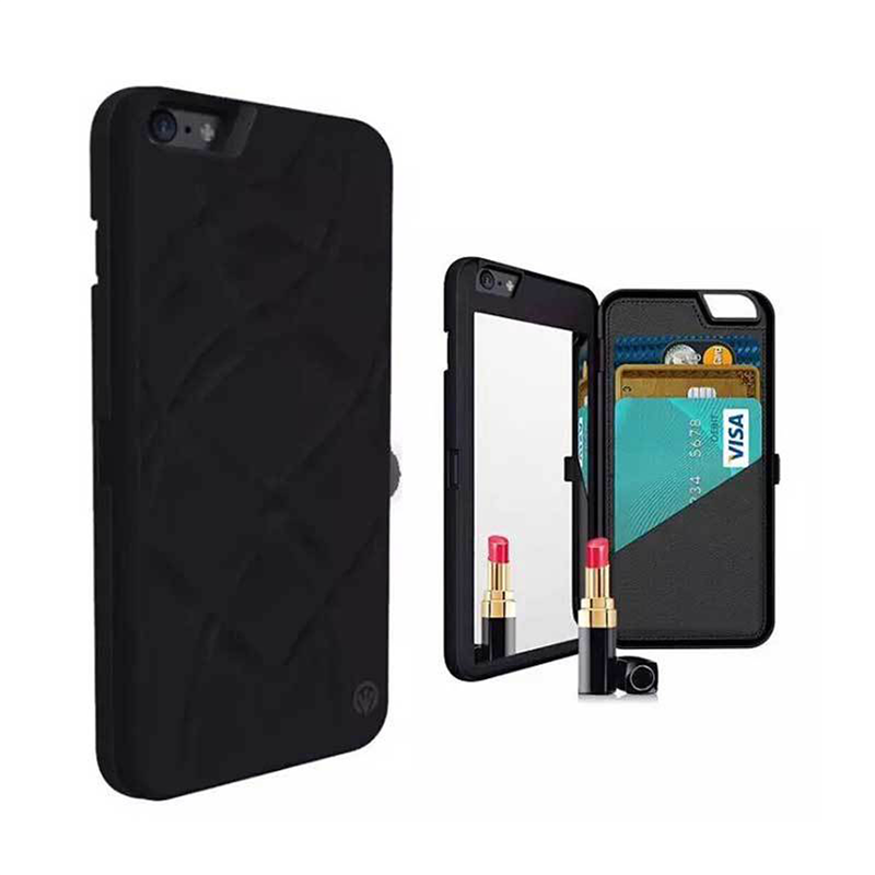 Luxury for smart phone card wallet case with make up mirror. It is made of PC and TPU. Great for phone theme activity promotion.