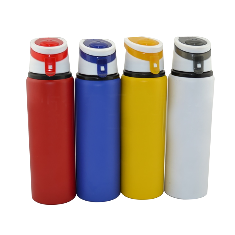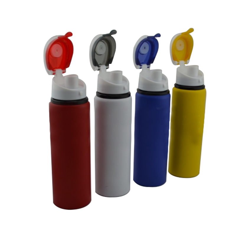 It is made of aluminum. Angled spout provides an ergonomic drink interface that delivers a high flow of water without sloshing or spilling Company logo and name can be imprinted.