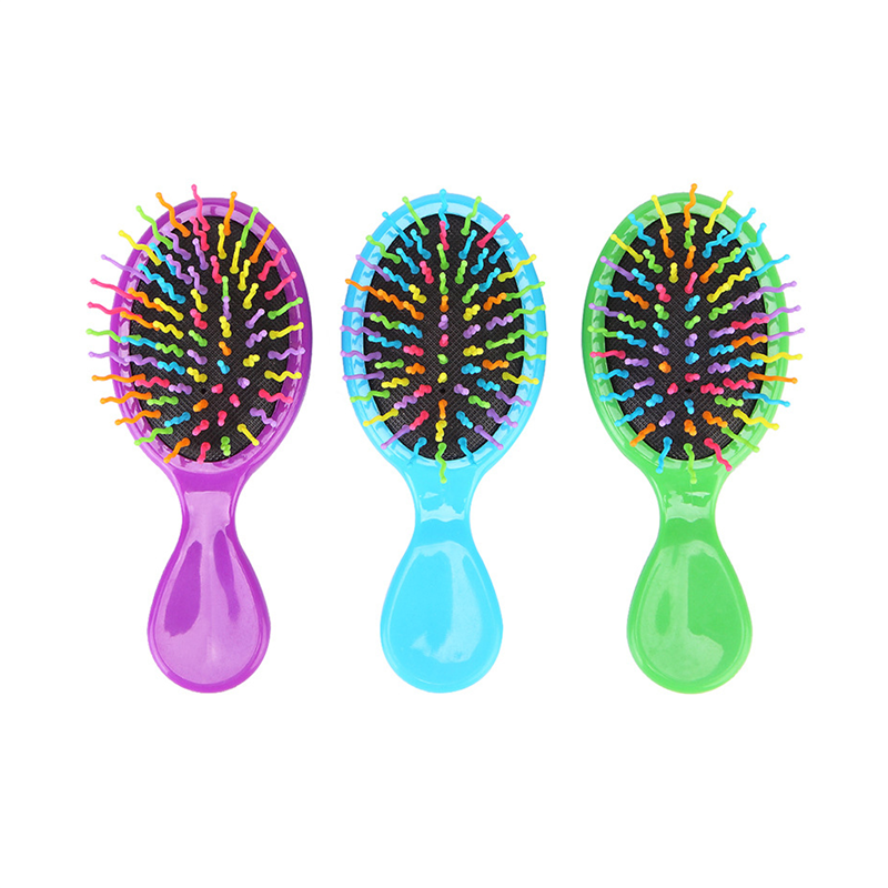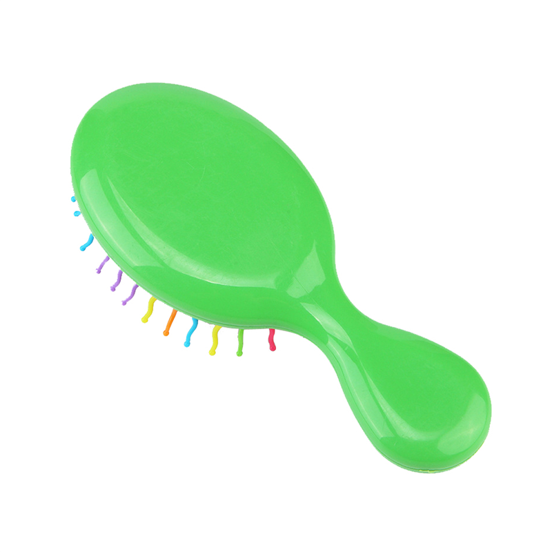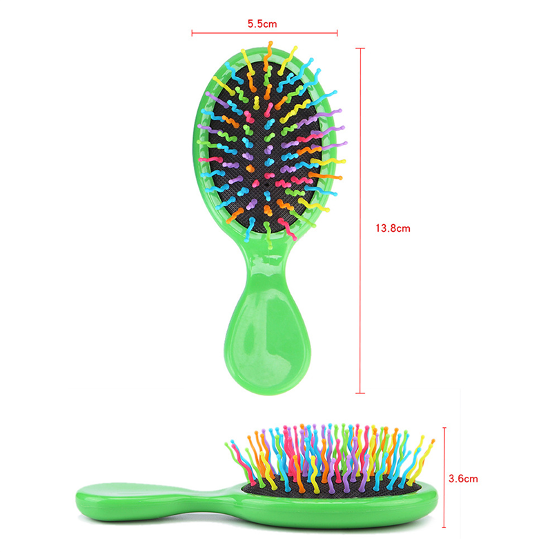 The rainbow comb is made of ABS and nylon, and its size is 5.43" x 2.16" x 1.42". It is great for children use. Blue, Green and purpls colors are all available.