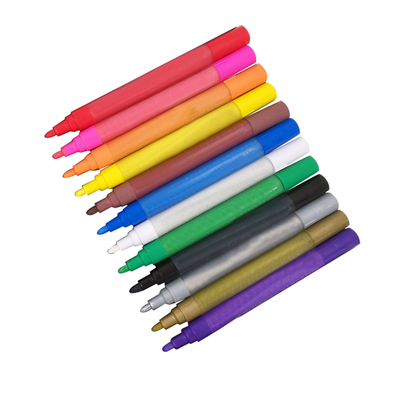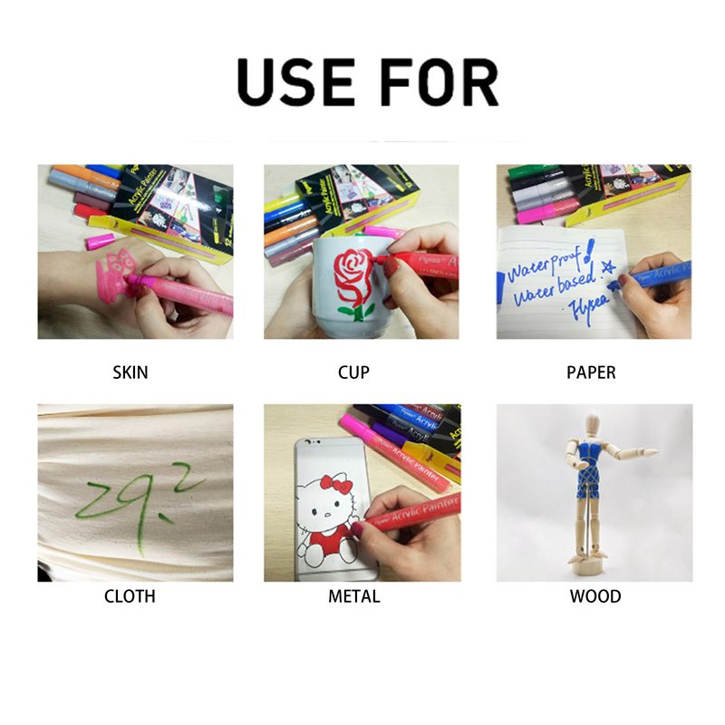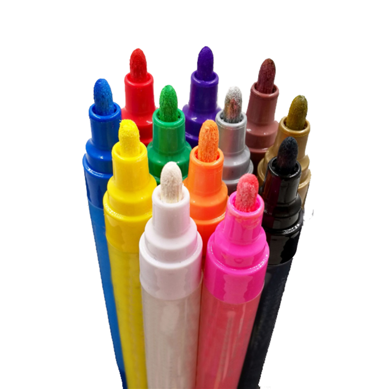 These acrylic markers brush pens Include 12 colors, each paint marker is full- filled with vibrant opaque colors. Very best to be used on any surface, create your stunning masterpieces on paper, canvas, wood, brick, stone, glass, metal, plastic, fabric and so on. You can have your logo on the pen.