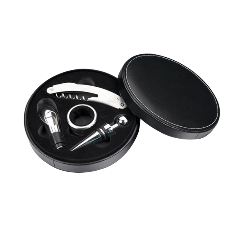The gift box is made of PU, and tool set is made of stainless steel. Set Includes combo corkscrew bottle opener, drip stop ring, stopper and combo pourer stopper. It makes for a great present for all wine lovers.