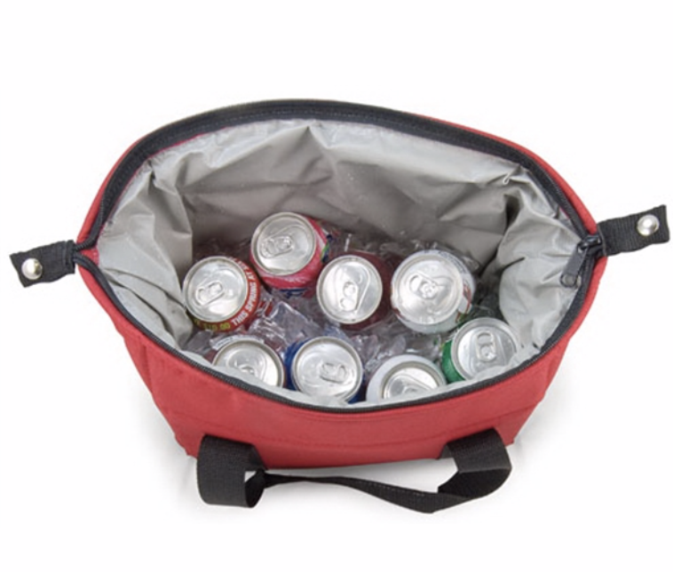 This soft sided cooler bag is made of tough duck material, with a leak-proof liner. Designed to hold 6 cans or bottle, but great for using as a lunch tote also.