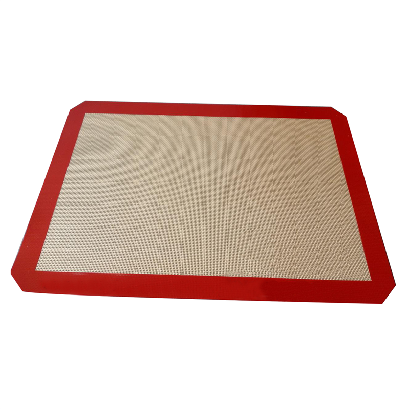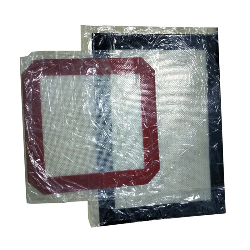 It was made of silicone material on the brim, and fiberglass in the middle. Both sides are non-stick mats. Heat resistant up to 450 degrees freezer safe.