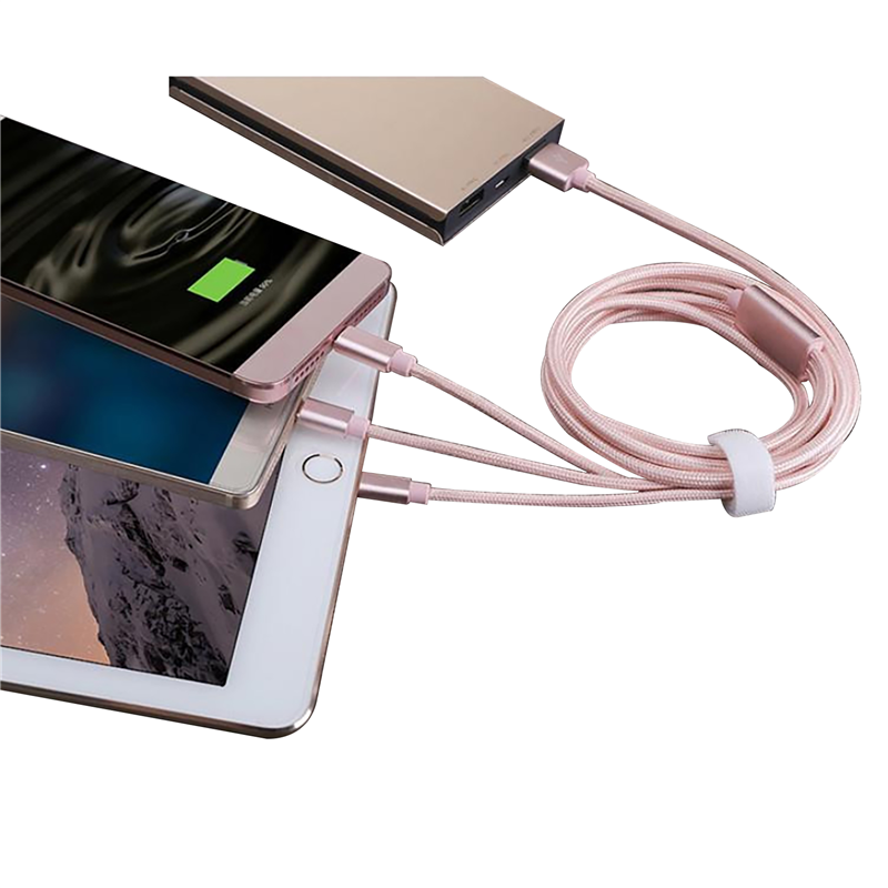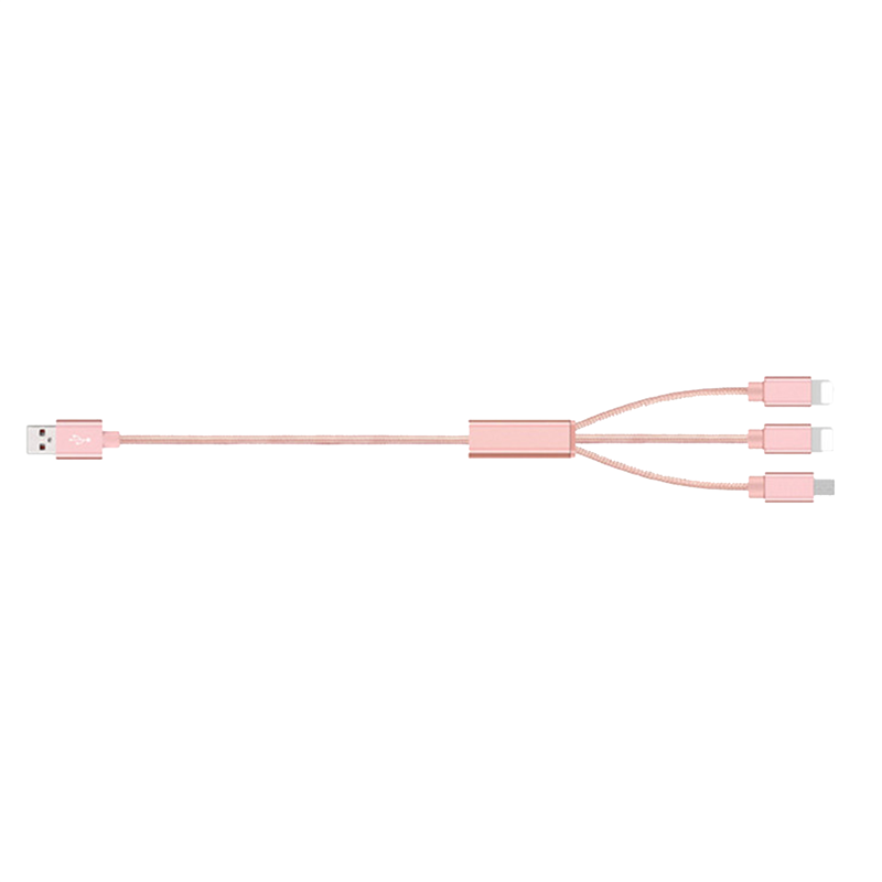 The universal charging cable works with nearly all mobile devices and can charge them via USB port. This item includes a lightning iphone, type-C and micro-USB connectors. It features an easily attachable band and provides convenient and practical service in recipients' daily lives. Reach out to your new clients in a new way!