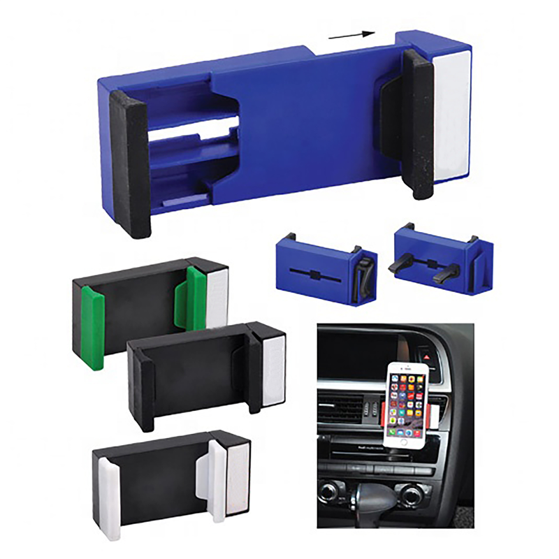 Union Printed, Car Air Vent Mount Phone Holder, Keep your smartphone in sight at eye level and ready to use, Using a spring loaded expandable (up to 3") jaw, attaches most Android & iPhone phones, Grip made from a soft rubber material won't scratch your phone, Lightweight and small enough to fit in your pocket or purse. Full Color Process Epoxy Dome Label Print Included! Decorated in our Union Shop - Union Bug Available at No Charge!