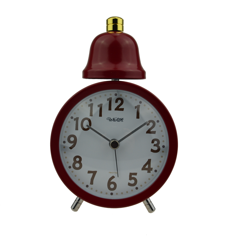 This alarm colock is made of metal, its unique design with a bell at the top is very attractive. Any complicated logo can be printed onto the central part of this product.
