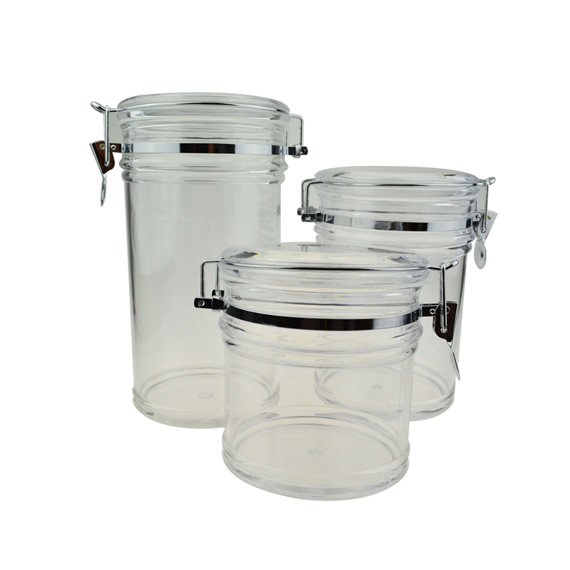 This Acrylic jar is great for use storing cookies, sugar, flour, spices and other kitchen staples. The airtight lid with silicone gaskets to help preserve stored food items, there are different styles and sizes are available.