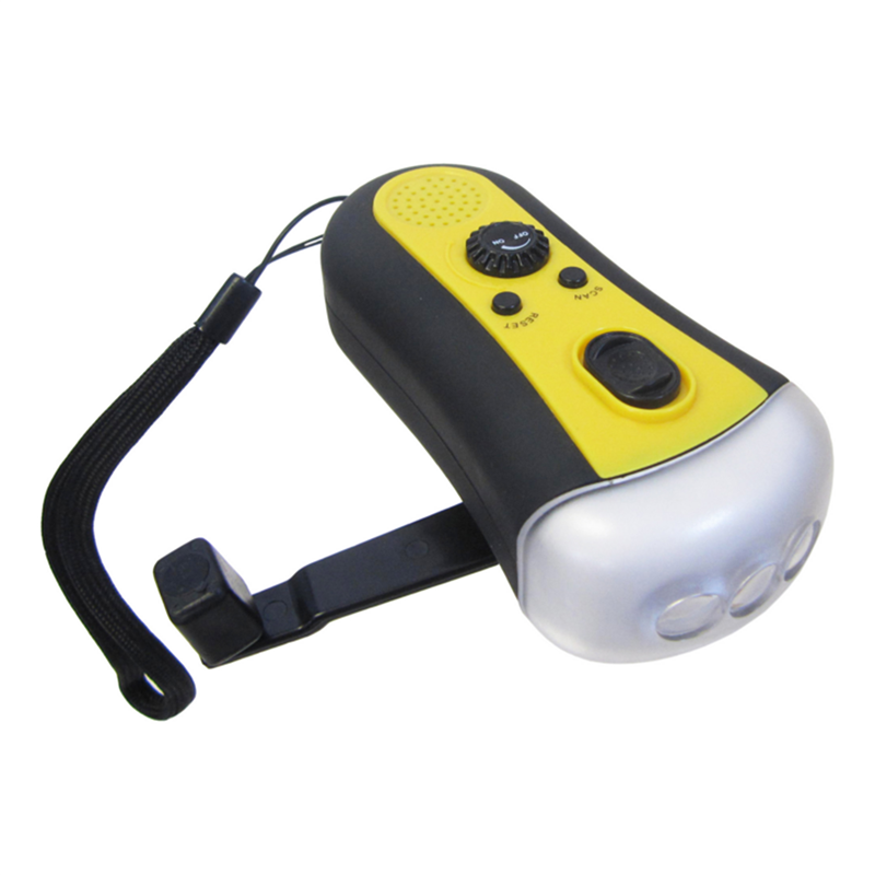 This radio can be used with emergency situation, the power can be charged with hand cranking,1 mins hand cranking can support 20 mins led light working or 3 mins radio working, radio works under FM mode and auto searches. the capacity of lithium battery is 3.6V/40MA.