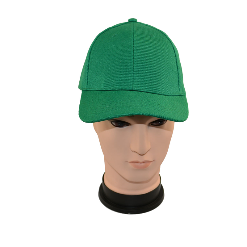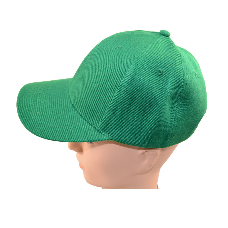 Green baseball cap, without embroidery logo, 6 panels and velcro closure by Acrylic material, many colors are avaiable.