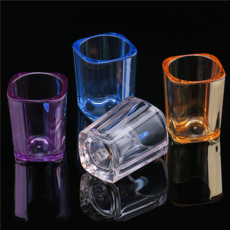This small cup is made of acrylic material. It has light weight for drinking. Many colors are available for your choice.