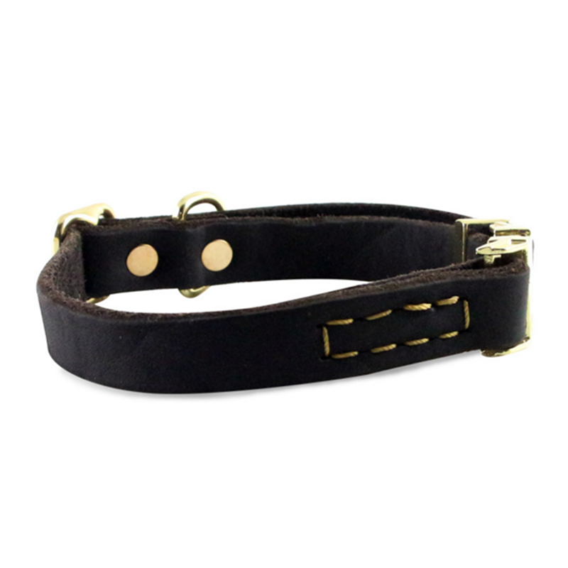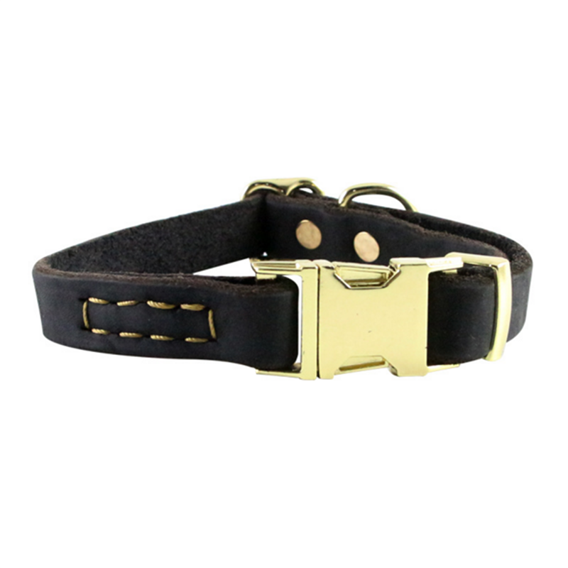It is made of leather, it has 3 sizes, no matter small-breed dog or big-breed dog all can wear. It is easy to hang dog leash, dog tag and dog bell.