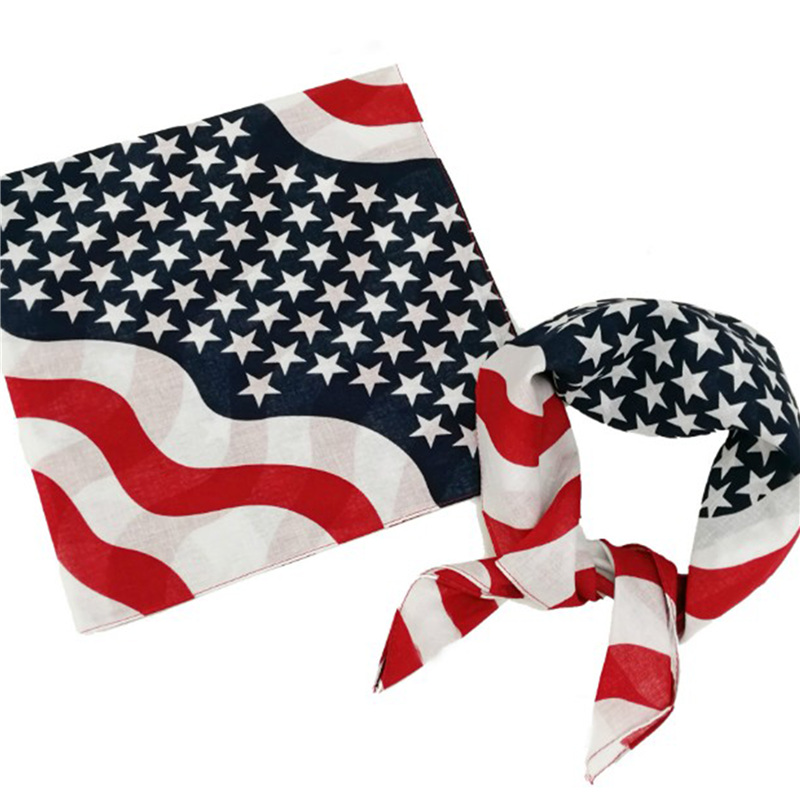 Show your American pride with a patriotic bandanna! Measuring 22" x 22" and made of cotton, this novelty designed bandanna is sure to be a hit at any political rally! Used as is, this bandanna is the perfect way to boast your patriotic pride during community events and Independence Day celebrations. Or, include your logo and hand them out during the local parade!