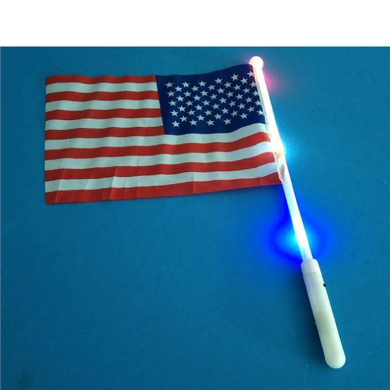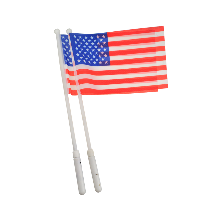 Illuminate your logo in a unique way with this 7.5" x 10" LED single reverse stick flag! This 100D flag is mounted on a light up staff that features 3 stand-out light settings and included batteries that are replaceable. LED light colors are a combination of red, blue and green only and is the ideal promo for sporting events, concerts, fundraisers and much more. Complies with Prop 65. 19" L x 11.8" W x 7.8" H