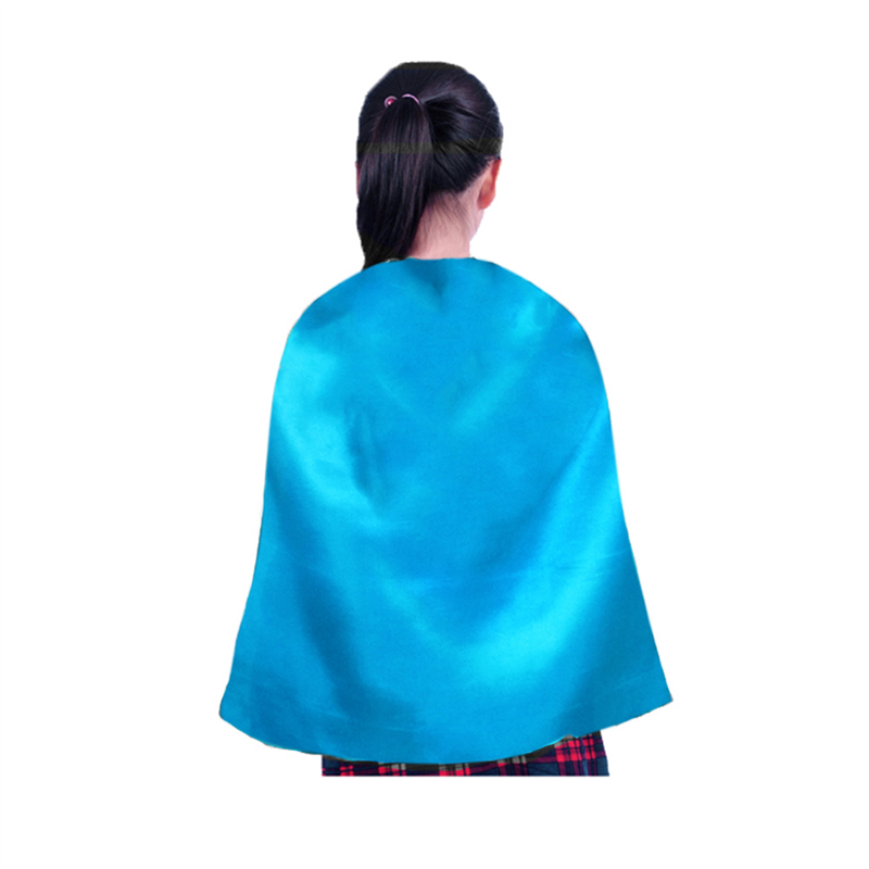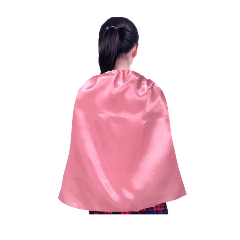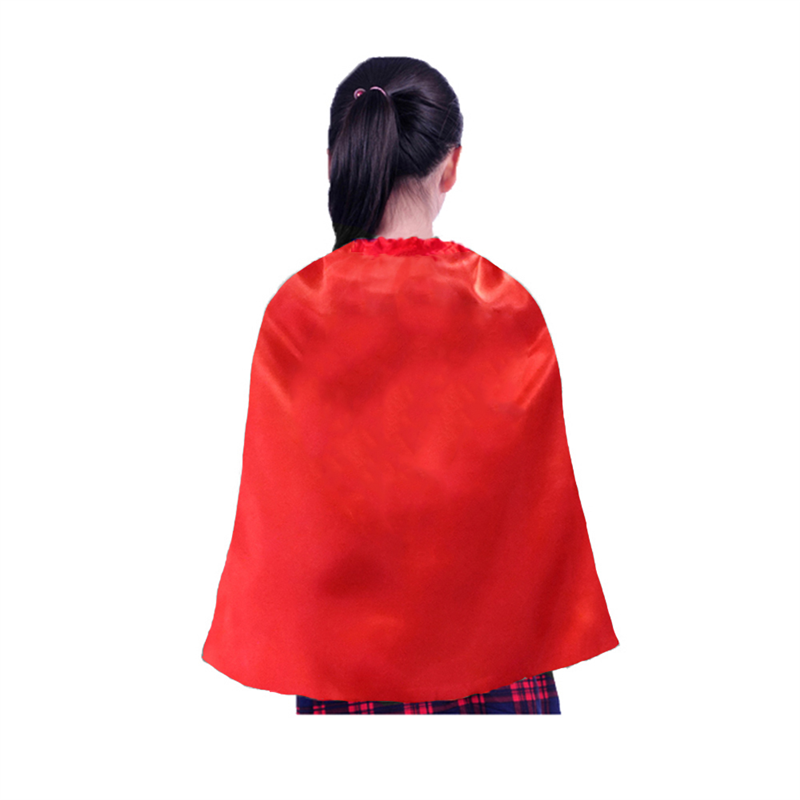 The cape is made of satin fabric, 100% polyester. It is a great gift for children in Halloween. Various colors are available and customized logo is welcome.19.68" *27.56"