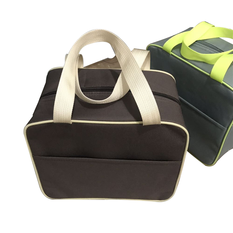 600 D Oxford insulated picnic bag with a handle on the top and zipper closure. It is convenient to take along with. One extra pocket on front. Made of durable oxford material and interior insulating Vinyl layer, air-tight sealing, keeps foods and drinks cool and fresh for a long time.9.8"L*5.9"W*8.26"H