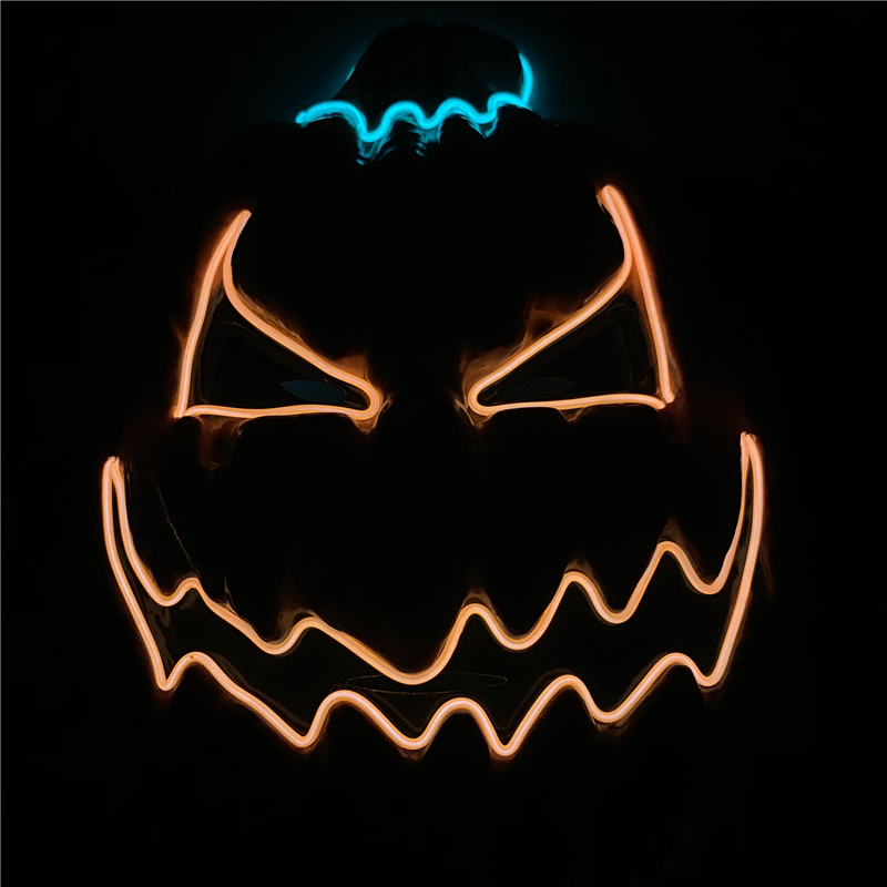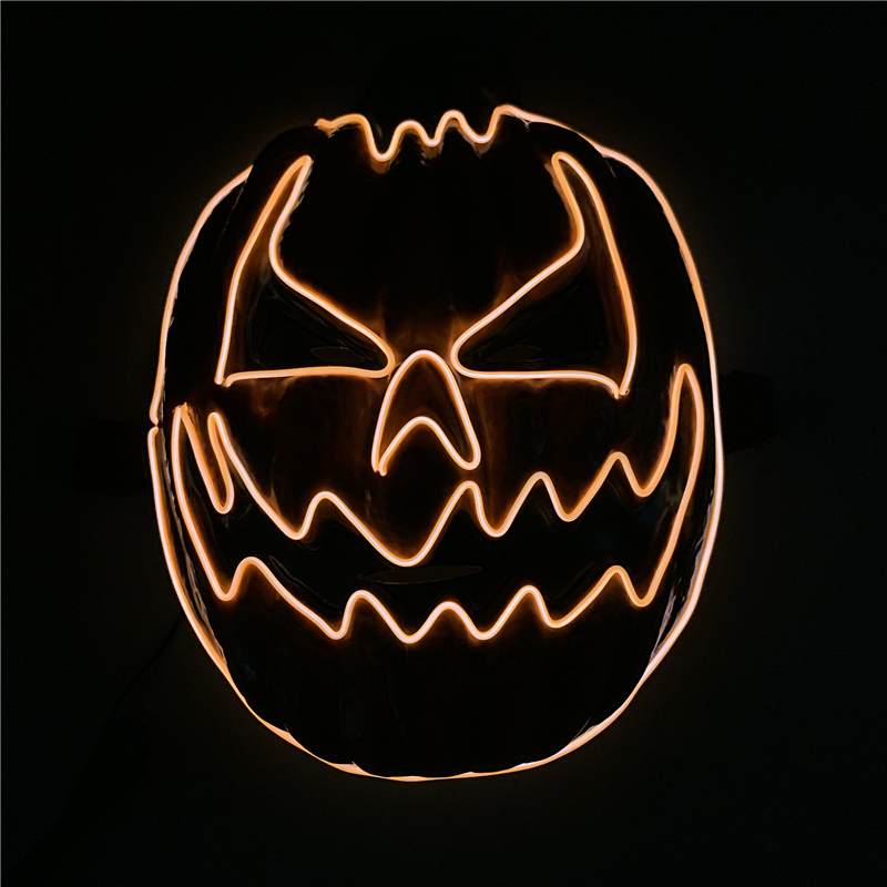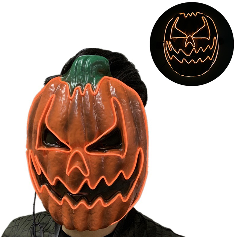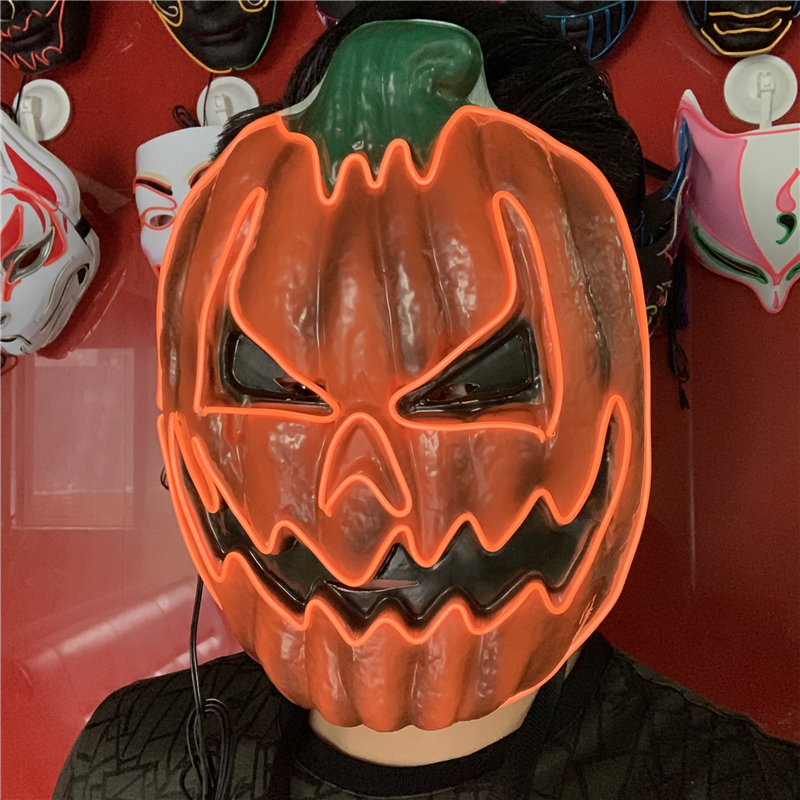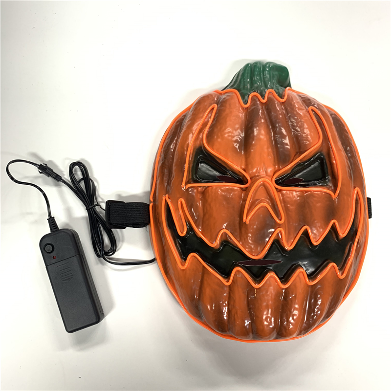 This mask made of PVC, with LED light, funny pumpkin shape, interesting and scary for Halloween party. Can print logo on the battery box.