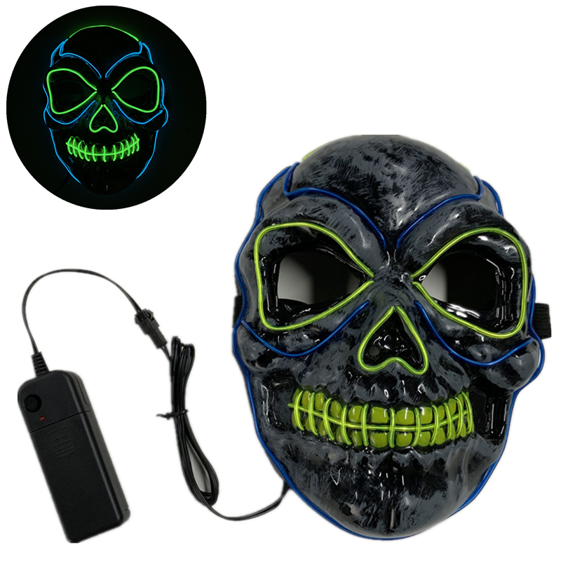This mask made of PVC, with LED light, funny skull shape, interesting and scary for Halloween party. Can print logo on the battery box.