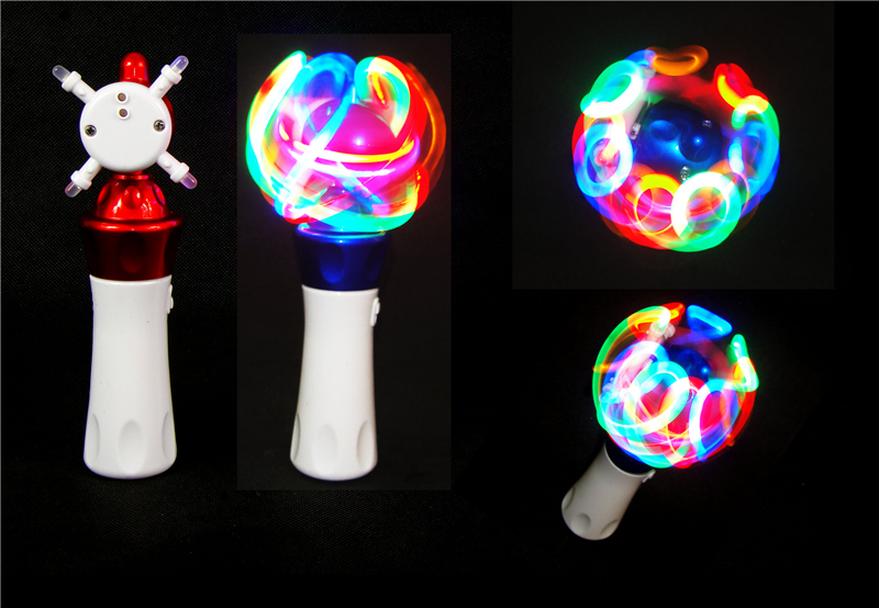 Have fun lighting up the night with our LED Galaxy Spinner Wand. This handheld Spinner Wand features a red and blue LED in the middle of the crystal ball, with 4 LED's (orange, blue, green, and red) attached at the ends of the spinning strings. Simply press the button and watch the spinning light show begin! Batteries are included and installed. Sold one wand per pack.
