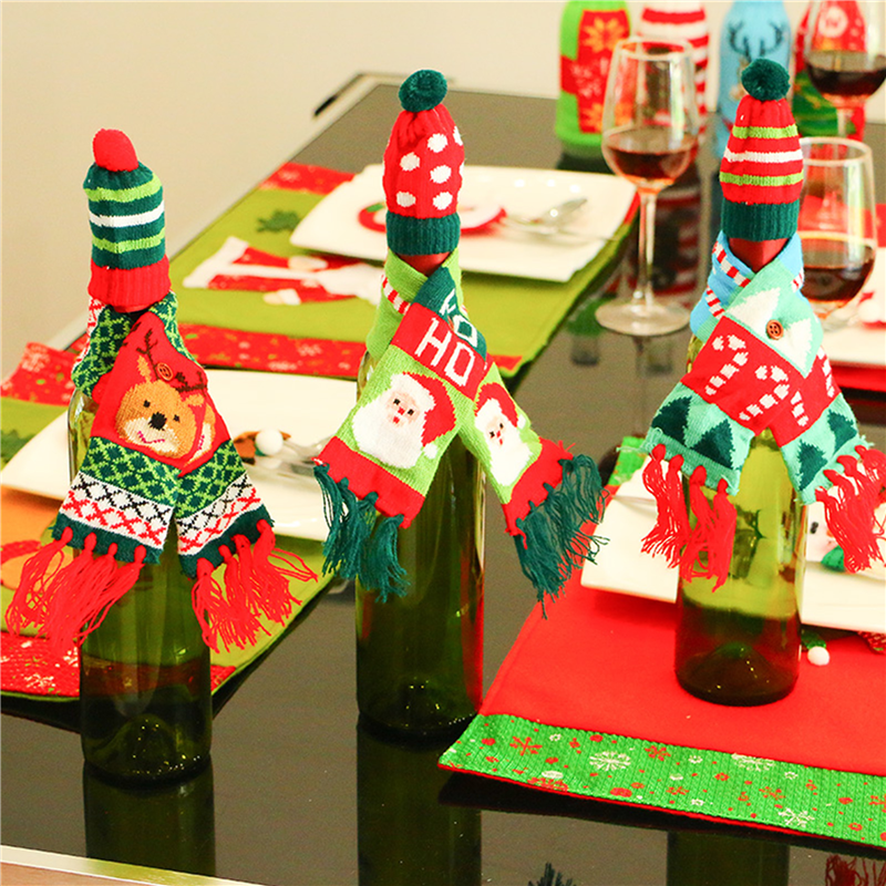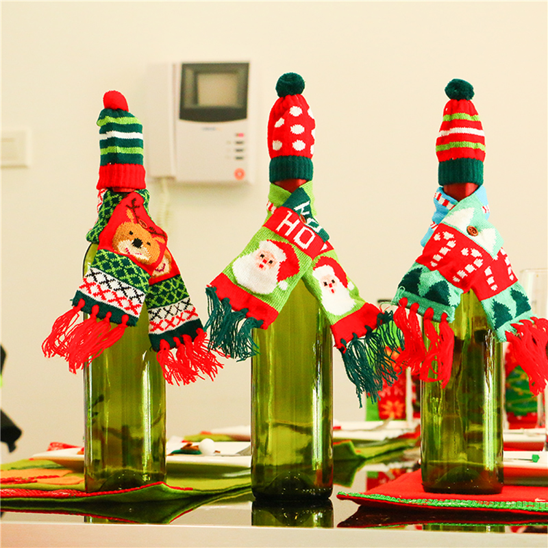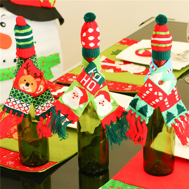 Christmas Decorative Wine Bottle Hat and Scarf