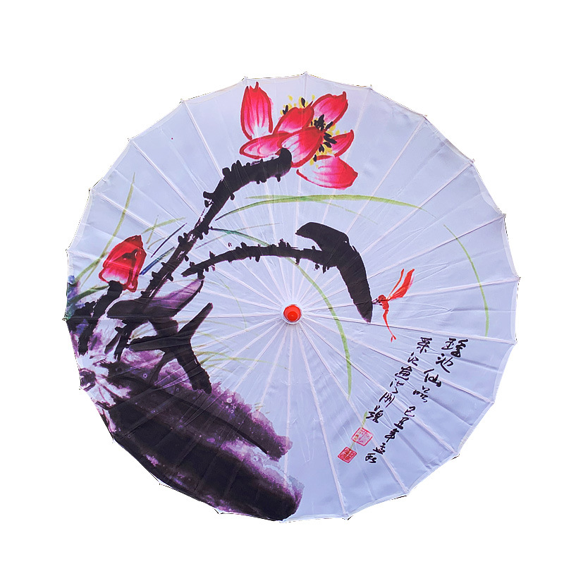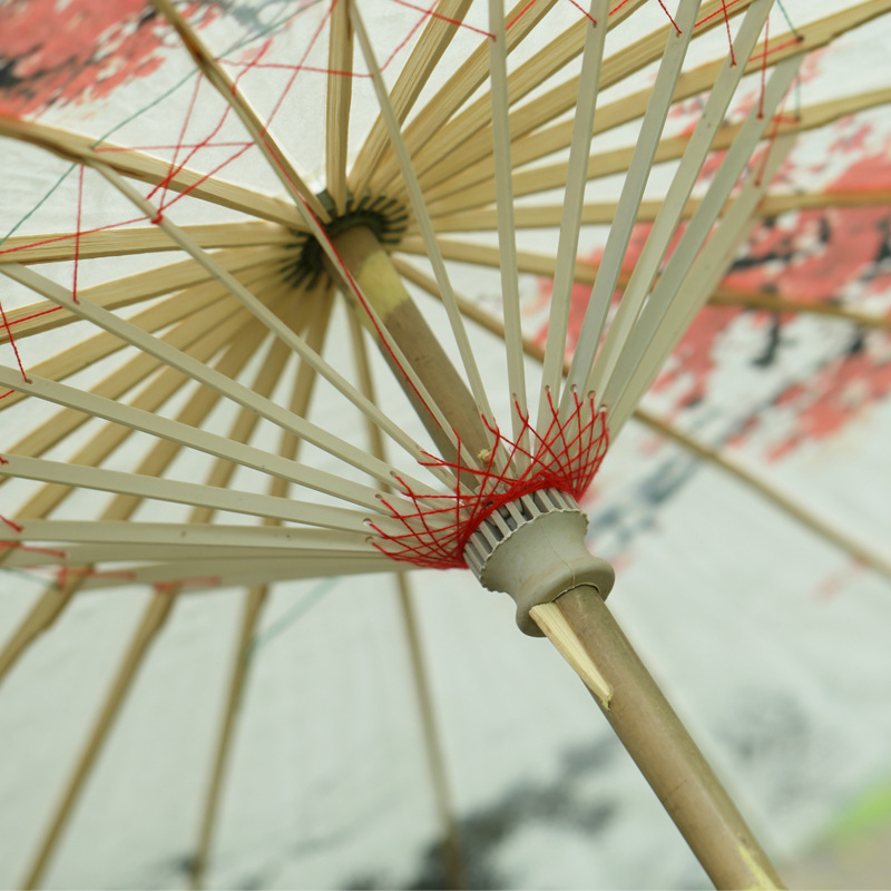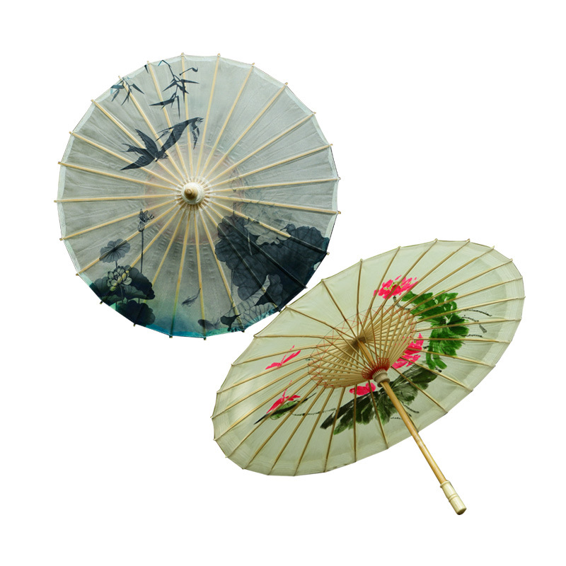 The umbrella is made of silk and wooden. You can customize your logo on the umbrella. Silk umbrella is sturdier than paper umbrella, and it has no pungent smell of oil-paper umbrella.