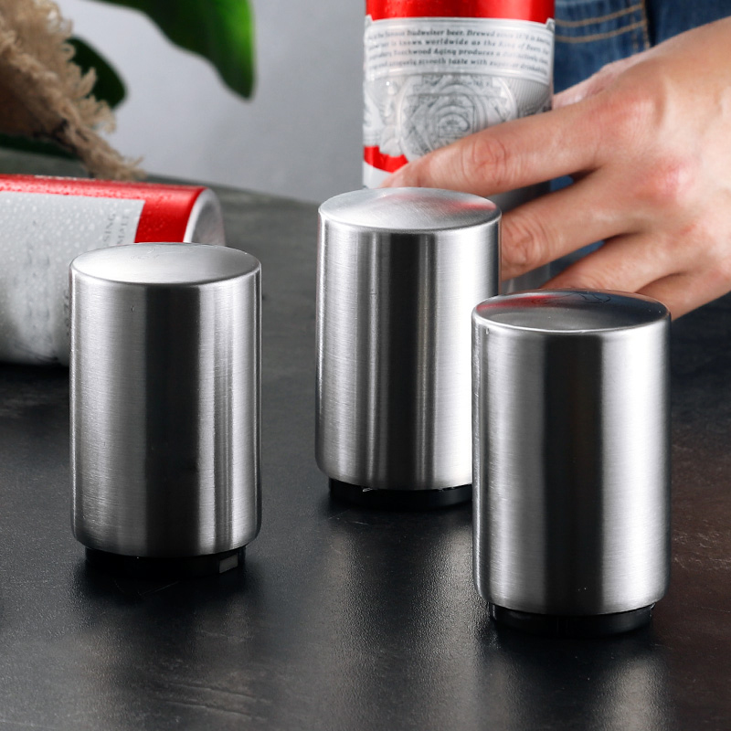 This is a automatic beer bottle opener, made of stainless steel. You just need put it on the bottle cap and push down, you can easy open the bottle. It also has a magnetic cap catcher, can catch the cap after open. Perfect to print you info. on the surface.