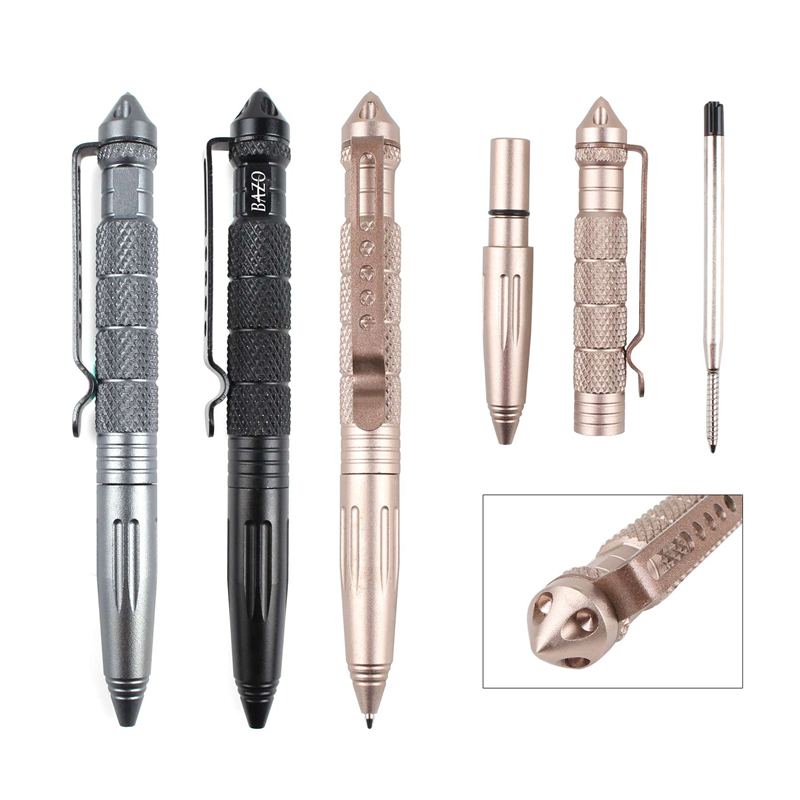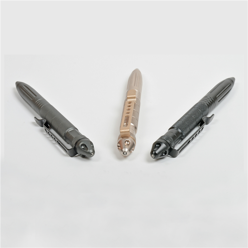 This tactical emergency survival pen is made of aluminum and features a glass breaker at the end for emergency situations. The pen is sized to provide a good grip for all hand sizes when used for writing or other emergency activities. Your logo can be laser engraved onto this pen to serve as a great reminder of those who help solve emergencies and prevent problems. Complies with Prop 65. 5.8" L x 0.57" Diameter
