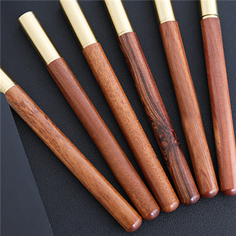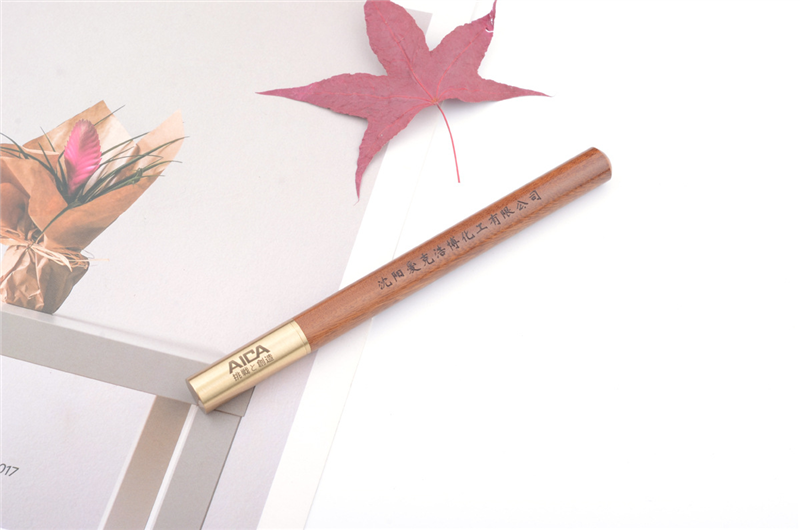 Upscale your brand with this elegant quality wooden pen! The lovely writing instrument is made of the eco friendly wood and features gold chrome trim and built-in metal clip. Smooth medium-point black or blue writing ink and silver chrome trim. Great item to show your appreciation to your client or employees while protecting the planet. 5 1/2" L