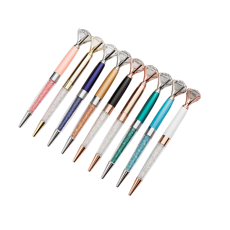 Stylish writing instrument made of the high quality metal. Smooth medium-point black or blue writing ink with beautiful large diamond top. High quality and lasting twist action ball pen that can be used as a gift to show your appreciation to new client or employees, Christmas or Wedding gift and much more. 5.8" L