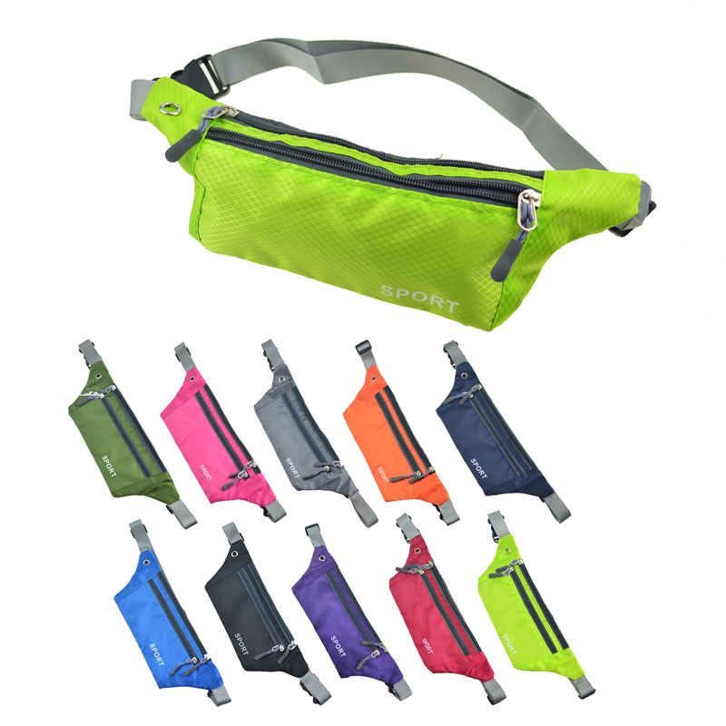 Keeps your belongings dry in the rain. This waist pack has 3 pocket zippered compartments and can comfortably hold water bottles, cell phone with a screen up to 6.5 inches, keys, wallet, and more. Keep all of your essentials within easy reach when you're jogging, dog-walking, bicycling or other situations where you need your hands free. All waist packs are unisex and great for men, women and kids. Assorted colors and customized logo are available. 8.7" L x 4" W x 0.4" H