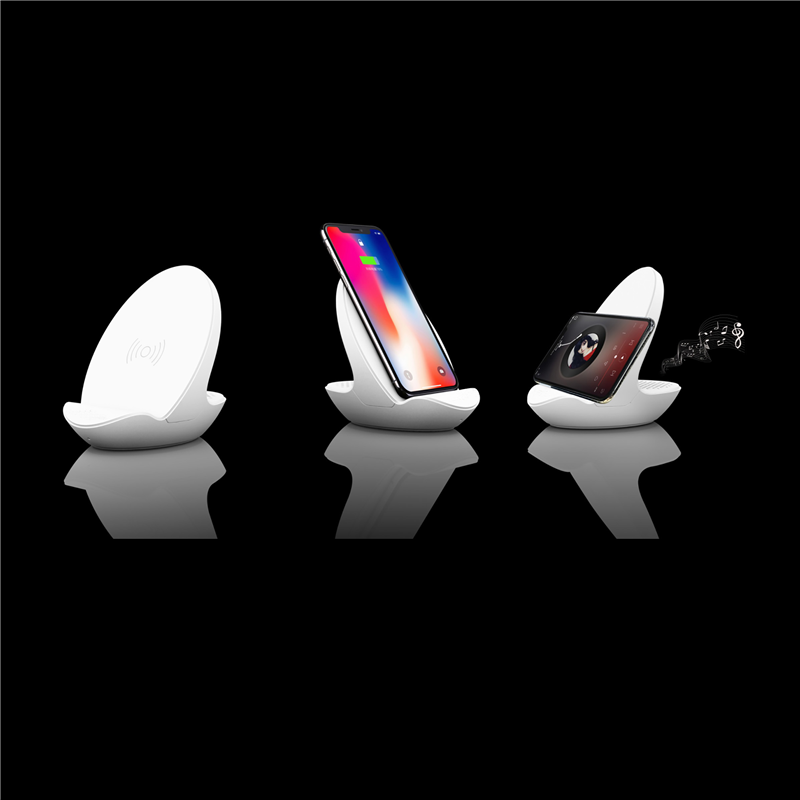 This is 3 in 1 product, wireless charger and bluetooth speaker and mobile stand. It is perfect to use at home and office. Logo and company information can be printed.