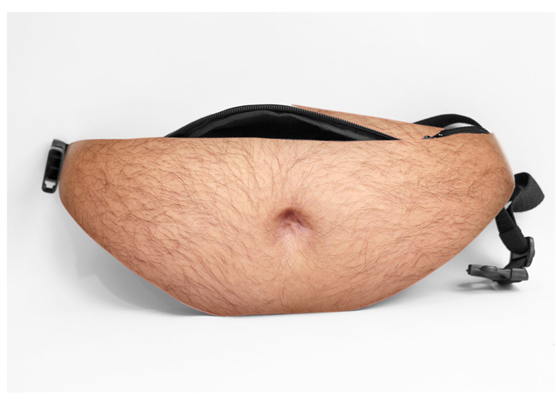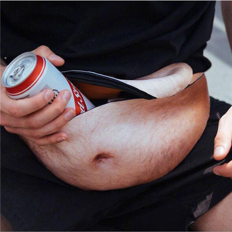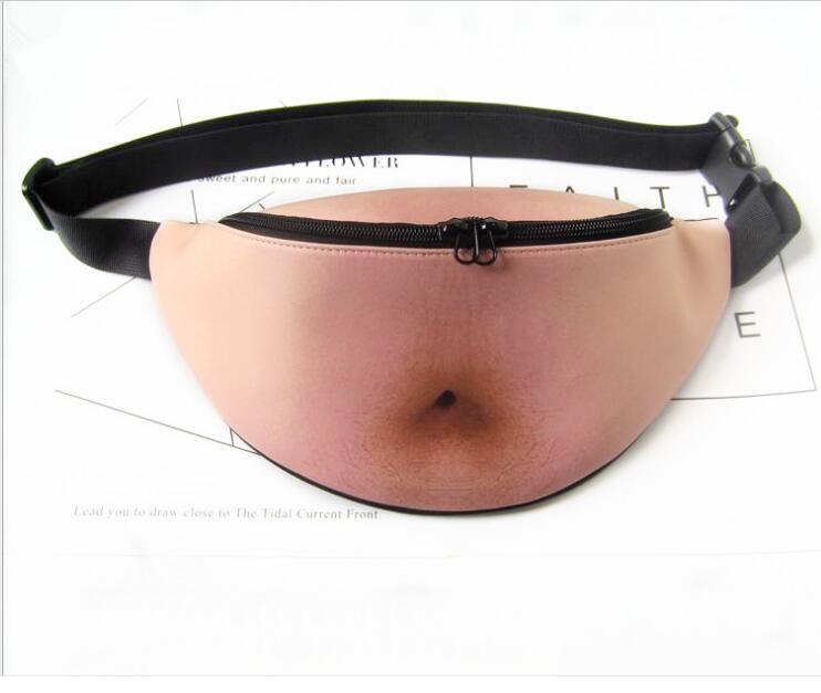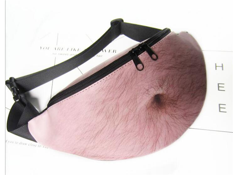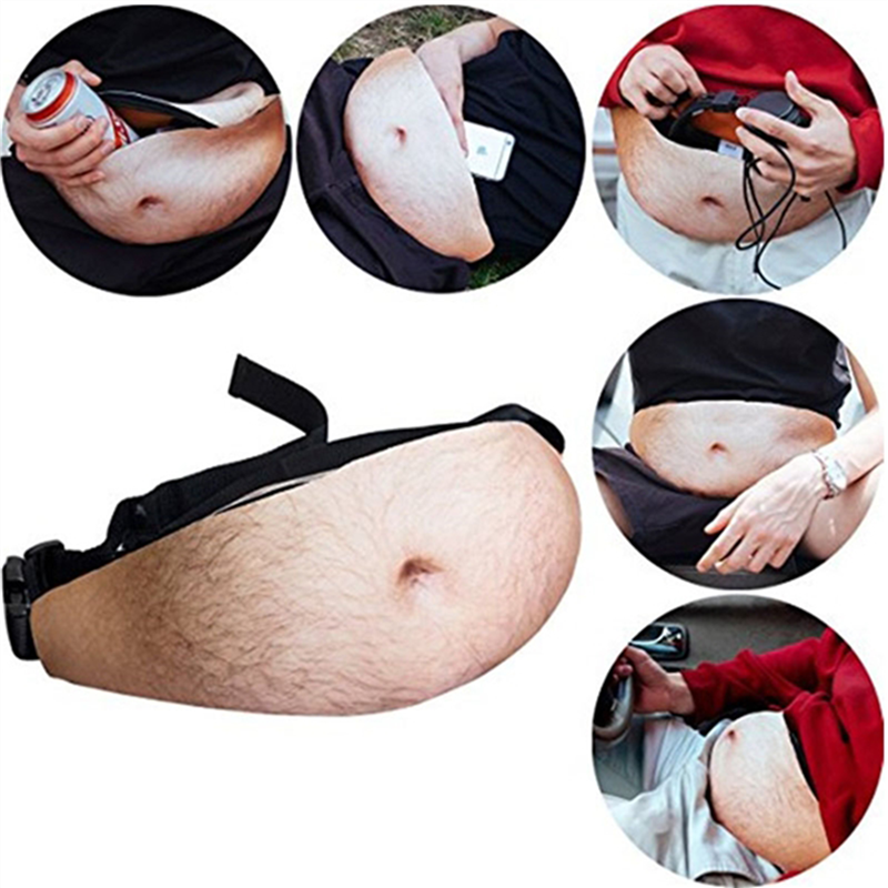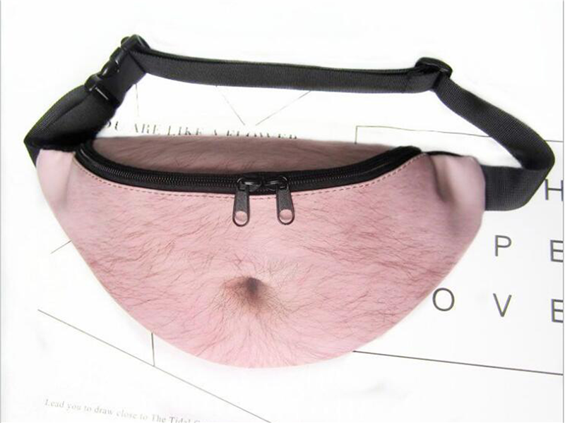 This Dad bags Beer Belly Fanny Pack is made of PU. Closure type is zipper, fits waist sizes from 26" to 47" with flexible and adjustable belt, popular item for outdoor events. 3D print fake belly make the bags more funny. A lovely bag full of personality, so fresh and unique. Suitable for gifts spoof tricky!
