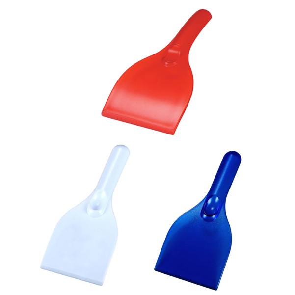 Break this ice with your customers and supporters this winter with this indispensable cold-weather automotive tool. This ice scraper is 8 3/4" x 4 1/5" x 3/8", and made or durable polystyrene. A built-in thumb grip makes quick work of even the most stubborn coating of snow and ice. Choose from seven great colors, then top off these scrapers with your company or organizational logo or message to create a promotion that's sure to see your customers through even the toughest winter. These tools are. 8 3/4" L x 4 3/16" W x 3/8" H