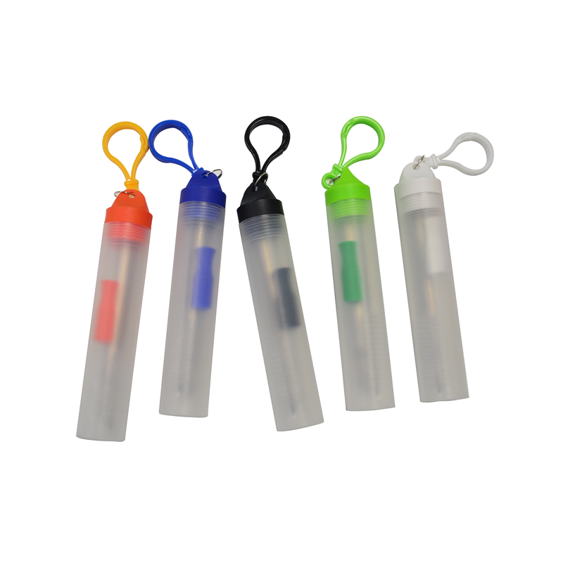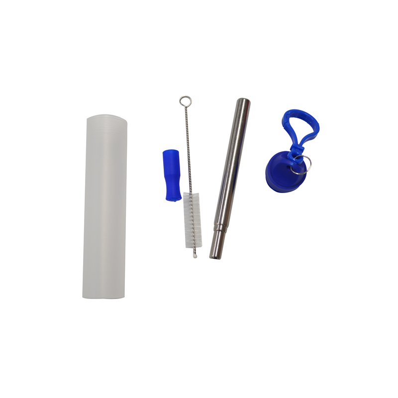 This straw set includes a foldable straw, a brush, a silicone top and a plastic box. Convinient to take out. Can custom logo and color.