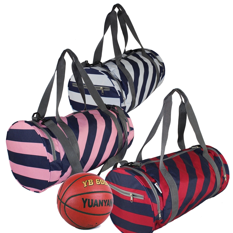 This travel bag is made with polyester 600D. It has a large main compartment and 2 side pockets with an adustable strap.