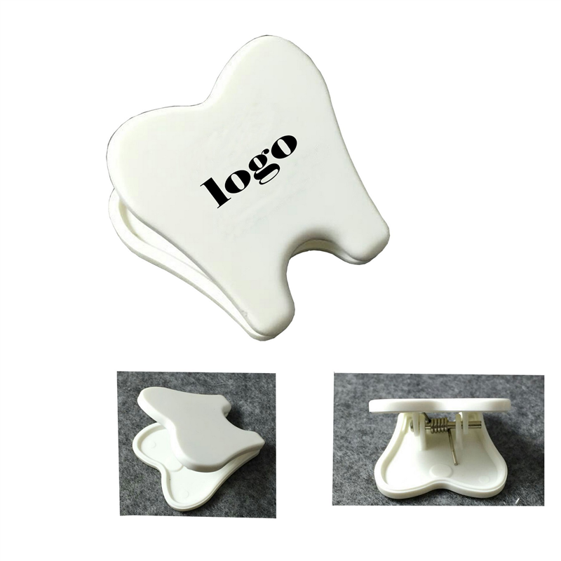 The clip is in the shape of tooth which is very unique. You can use this clip to organize your letter, tickets or your money. It is practical. The material of it is plastic which is durable. The size of it is 1.5 inches x 1.6 inches x 1.1 inches. We can print your logo on it by pad print. The size of the logo can be 1 inches x 1 inches. This clip is suitable to be a promo gift on some trade shows. Welcome your color and logo. 1.5" L x 1.6" W x 1.1" Thick