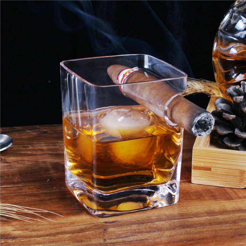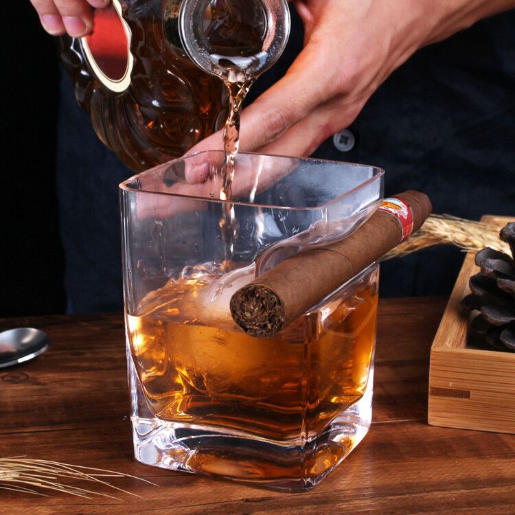 This cigar cup is handmade. It is made of lead-free glass. The capacity of the cup is 300ML. This cup has a unique cigar groove shape.The thickened bottom of the glass can make the wine in the glass more beautiful and shiny through the refraction of light.It can be printed with logo.