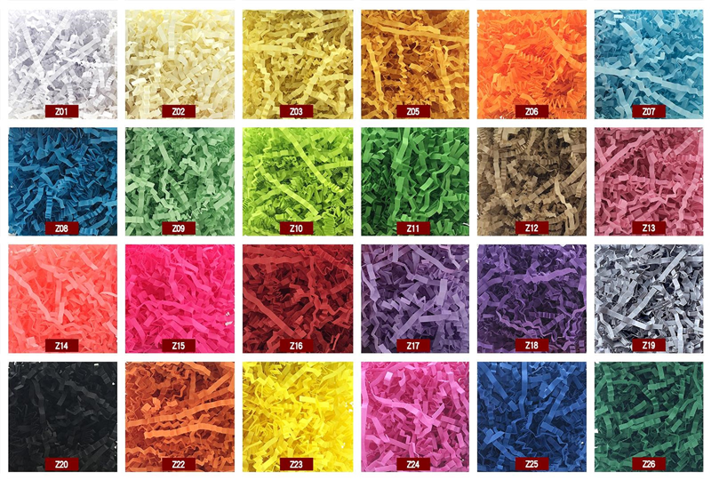 This eco-Spring-Fill Crinkle Cut decorative shred paper made from 100% recycled paper can be used as a decorative and protective fill for gift boxes, gift baskets, bags or displays. Listed price is for each lbs.