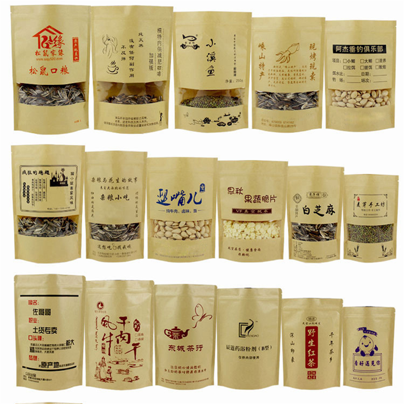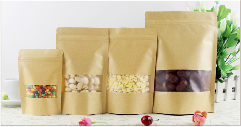 Attractive and durable Resealable Kraft Stand up Pouches with Zipper Lock enclosure expand at the bottom for attractive shelf-stacking display and storage. Heat-sealable for ultimate air-tight protection. Reusable for personal use. Inner foil lining protects against light and moisture infiltration. Perfect for storing dry goods such as tea, coffee, cookies, herbs, tobacco and other baked items! They also are great for bath salts, spices, dried fruits, trail mix, potpourri and other dried goods products and ingredients. Easy to label, stamp or design to your requests. Various sizes are available.