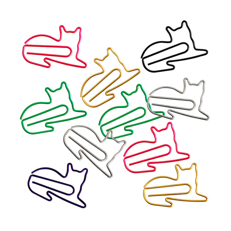 The material of this paper clip is iron with PET cover. There are 60 pcs in one box. The paper clip can be used to organize paper and do handbooks. This product has many shapes for you to choose from. The price is for cat shape. If you need price of other shape,please feel free to contact us. The logo and company name can be printed on the surface of box.