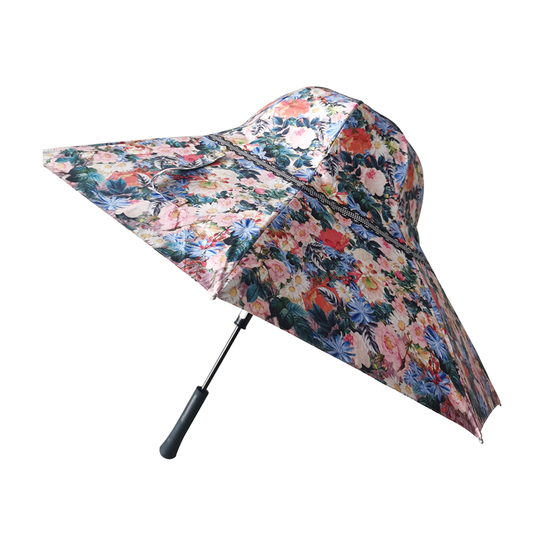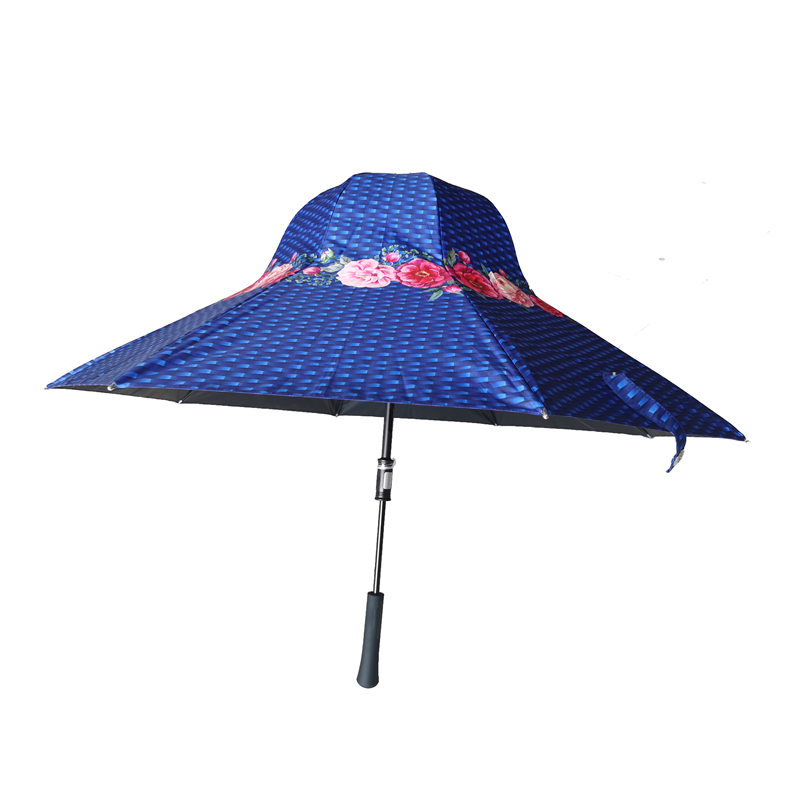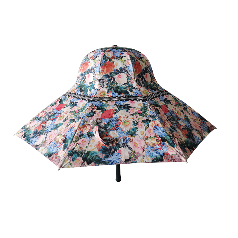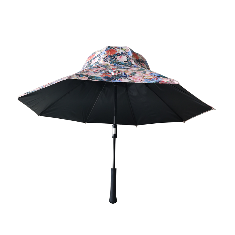 This umbrella is in the shape of a hat.It can not only keep out the rain but also keep out the sun.Product size is 23.5"*8K. This umbrella has stable structure and is not easy to be damaged.You can also customize the logo.