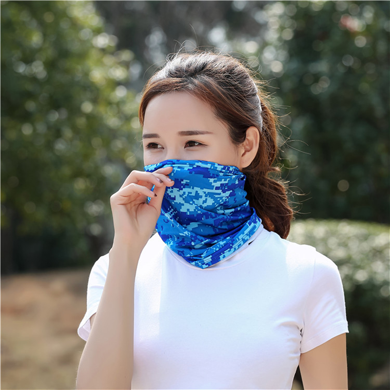 The material of this scarf is 95% polyester and 5% spandex.When you wear this scarf, you will feel cool.This scarf is multi-functional and can be worn in many ways.Places to wear: outdoor sports, fishing,mountaineering and camping,etc.Customized design acceptable, we offer free designing for your approval.