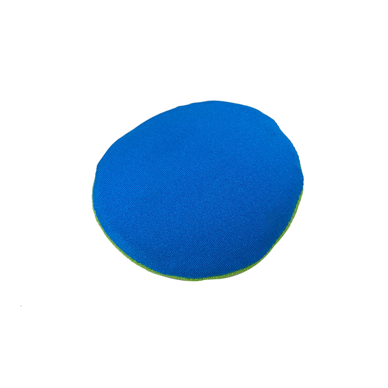 The material of this product is TPR ball inside and lycra smooth fabric on the outside. His shape is flat. It will not sink into the water. It can bounce on the water. Soft to touch and easy to play. Can custom logo and company name.