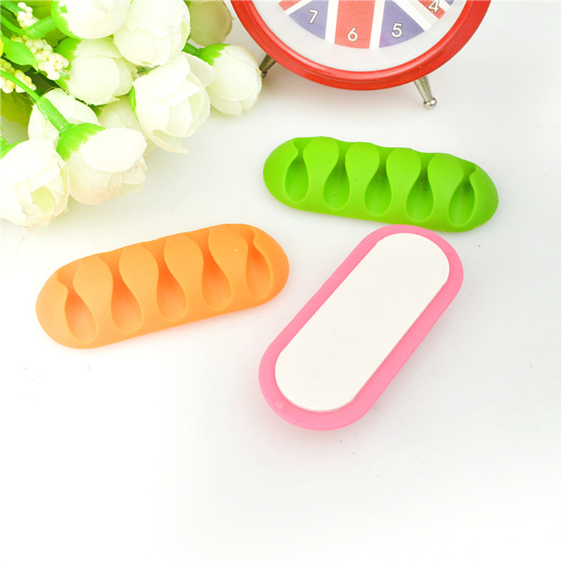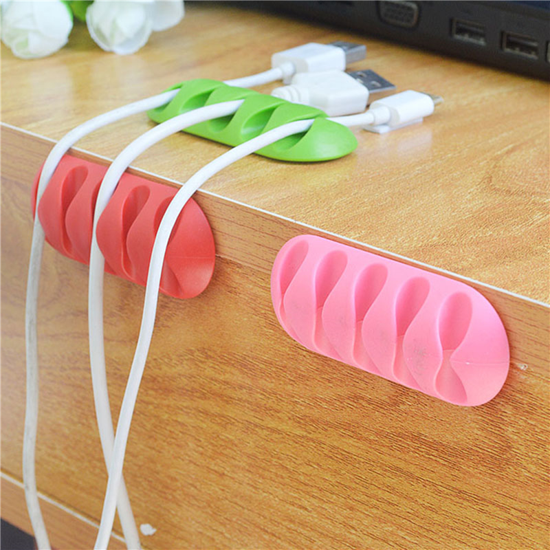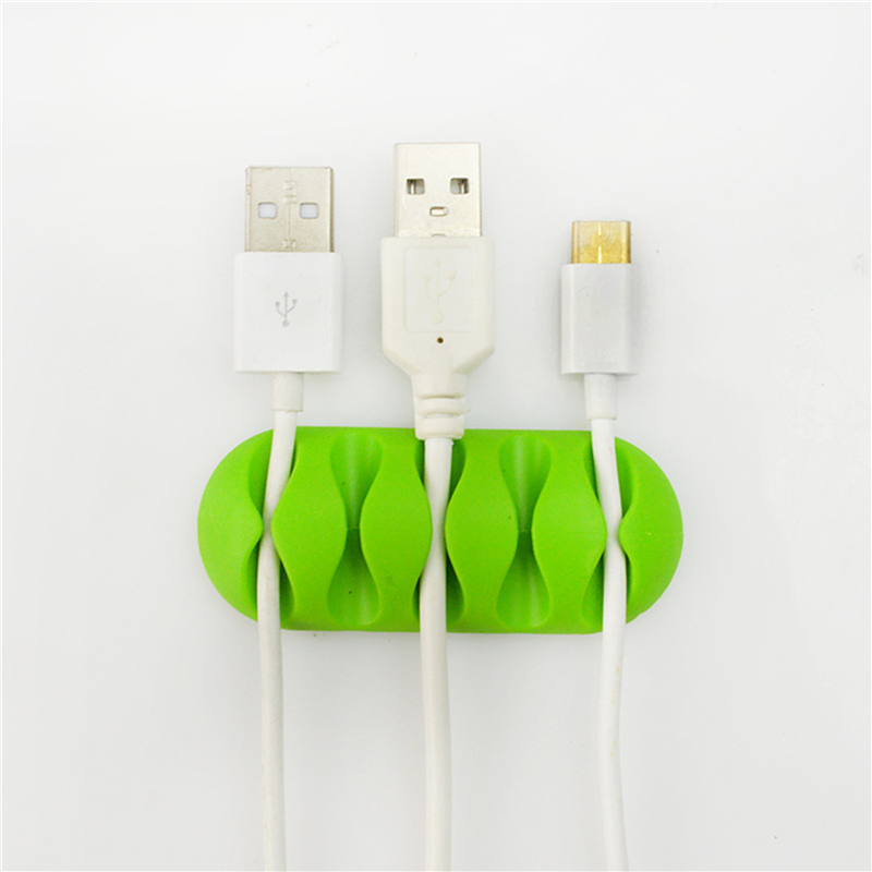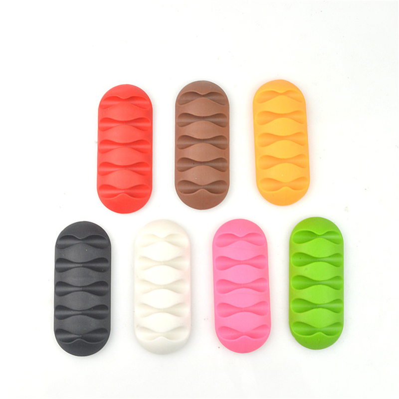This cable organizer is made of TPR, with 3M glue on the back. It can be glued to the desktop or any flat surface. It can be used to organize messy data lines. We can customize the color and logo for you.